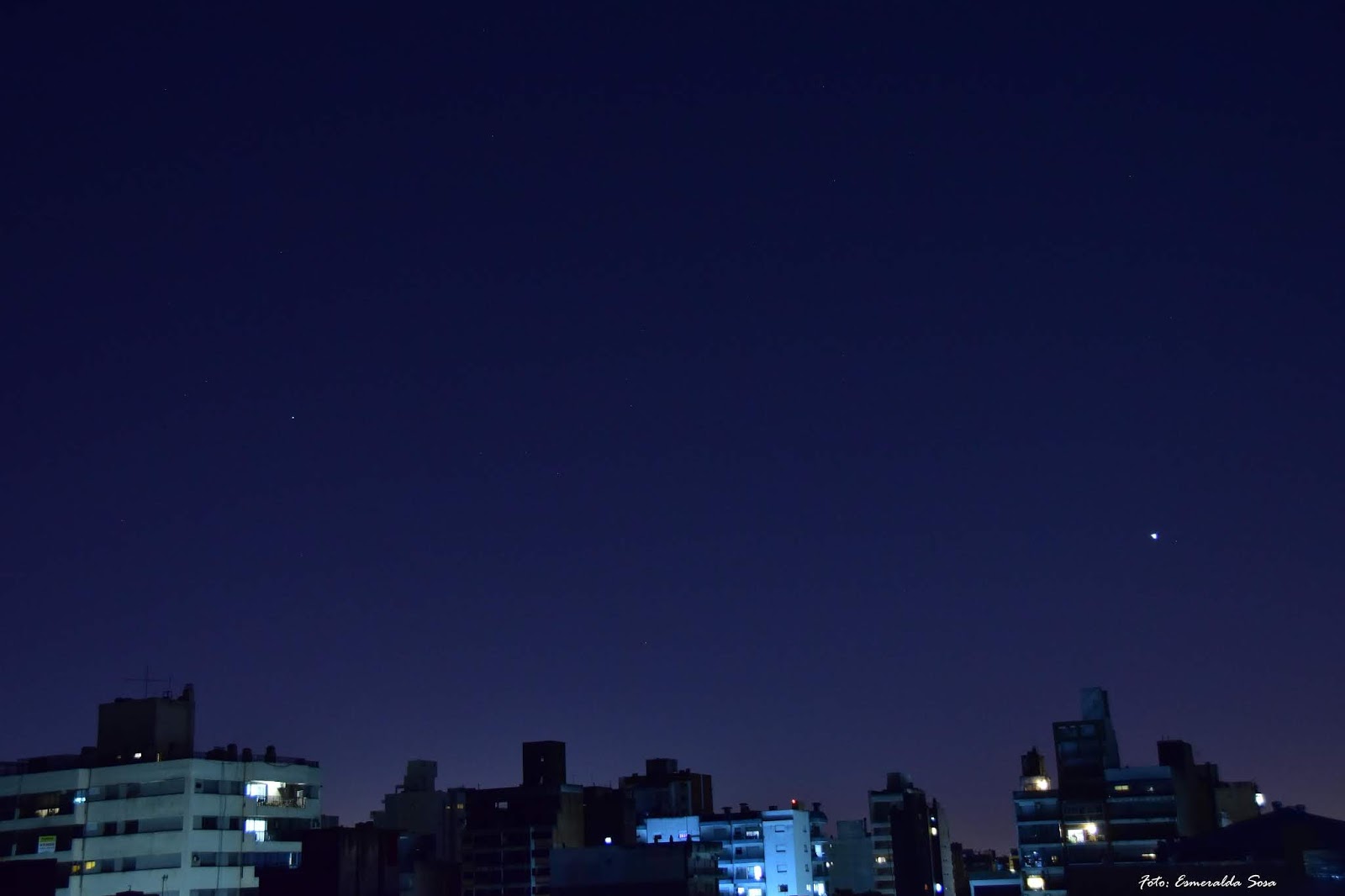 y a una altura de unos 20° sobre el horizonte oeste.