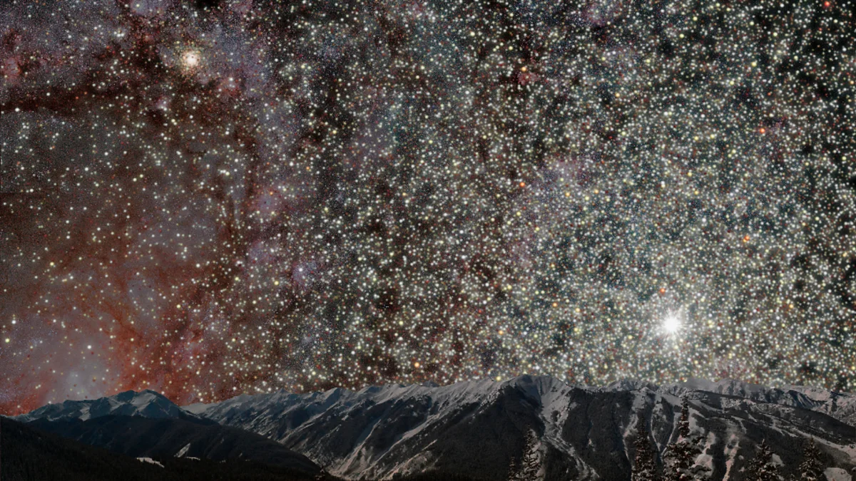 En esta simulación realizada por los astrónomos William Harris y Jeremy Webb, se puede apreciar cómo se vería el cielo nocturno desde un planeta orbitando una estrella ubicada dentro de un cúmulo globular.